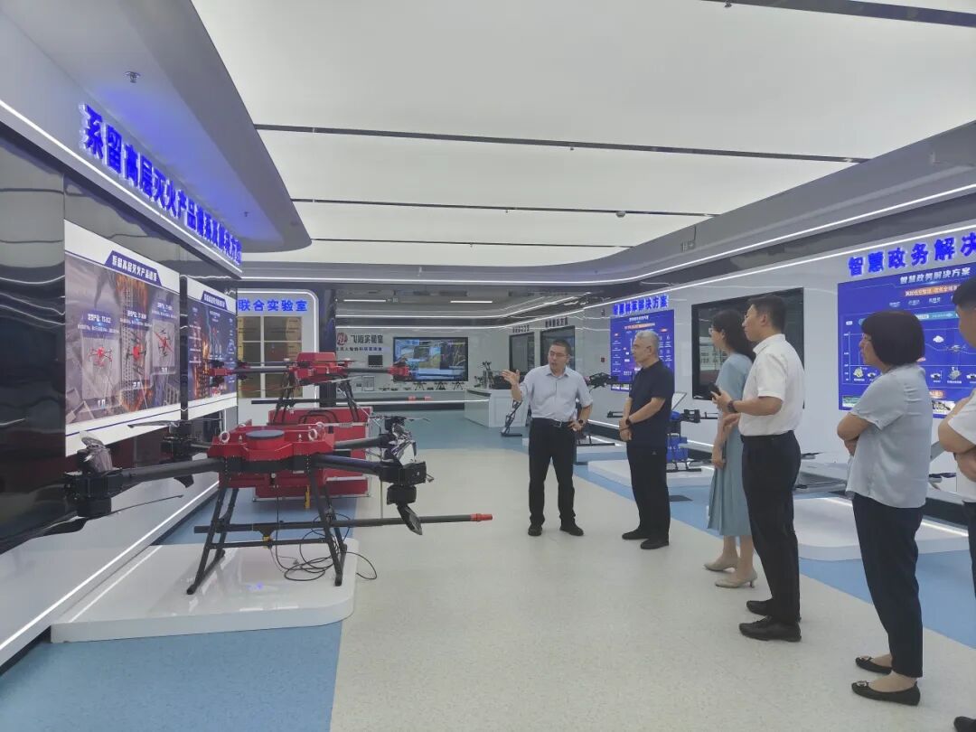 任雪峰董事长陪同于胜永董事长及其团队参观展厅,并就企业整体发展情况进行了深入交流。期间,任雪峰董事长系统介绍了卓翼智能的发展历程、战略布局、荣誉资质、核心产品线以及飞思实验室的建设成果。