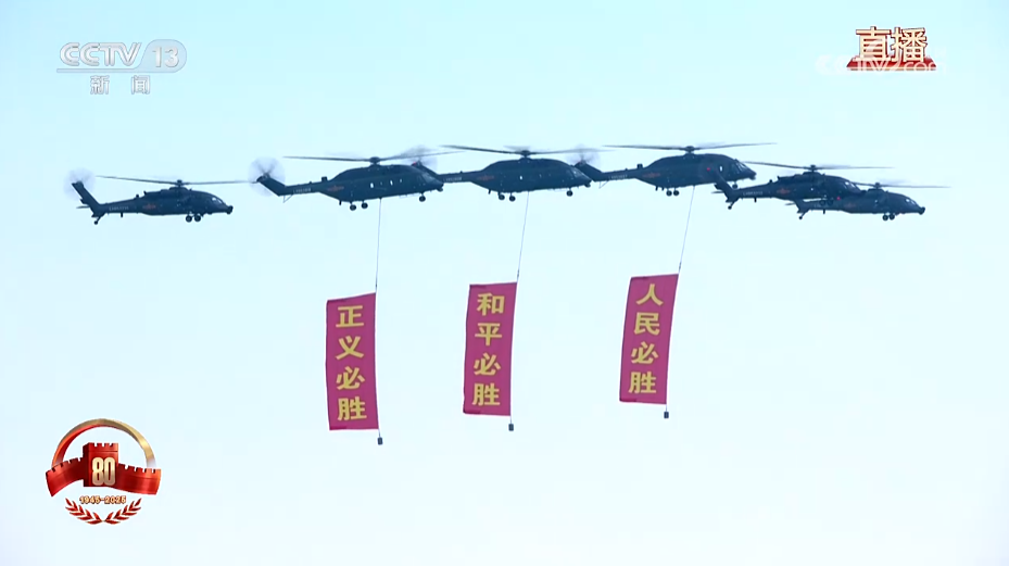 “正义必胜”“和平必胜”“人民必胜”条幅