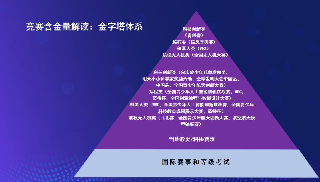 通过比赛,能让更优秀的学编程、学机器人、学科技创新、学航模无人机的孩子,获奖成绩成为科技特长生、或者入围强基计划的敲门砖以及报考条件,对升学和择校非常利好。