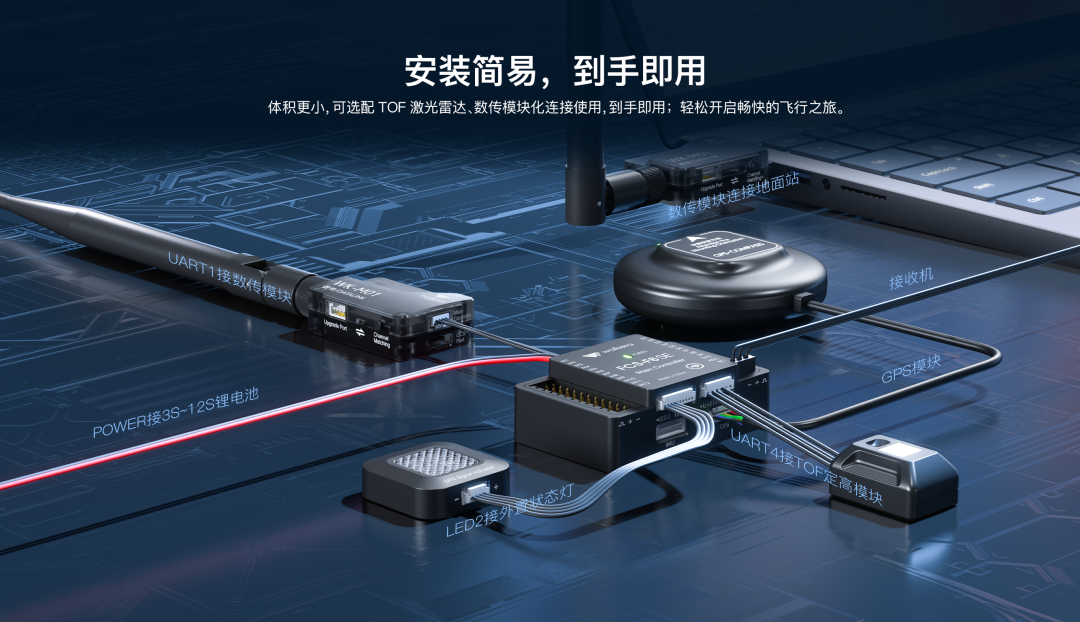 极致小巧适配广:飞控体积仅为行业同类产品的30%,全套设备重量控制在100克内,适用性极强,可轻松安装在小型练习机还是中型实训机。