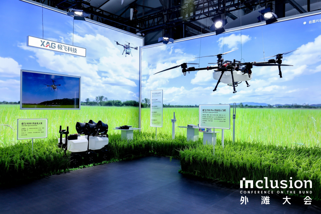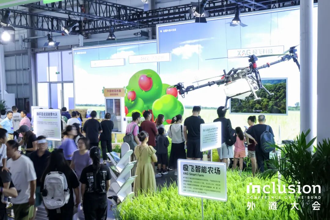 本届外滩大会展区涵盖“探索智能上限”“深入产业实践”“全球创新协作”三大主线,覆盖 LLM、通用人工智能、具身智能、AI+健康/出行/金融等多个前沿领域。极飞所在的展区,正是 AI 与农业深度融合的生动例证。