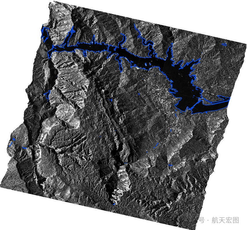 图1、天权大模型结合NDVI与DEM的SAR影像水体提取效果。