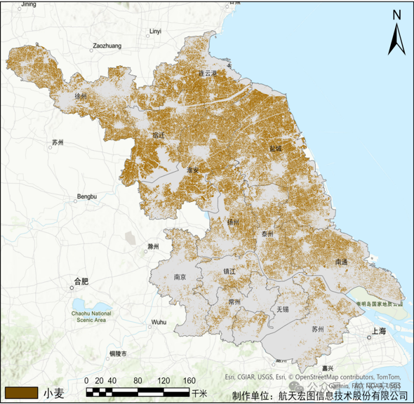 图5、2024年江苏省冬小麦空间分布图。