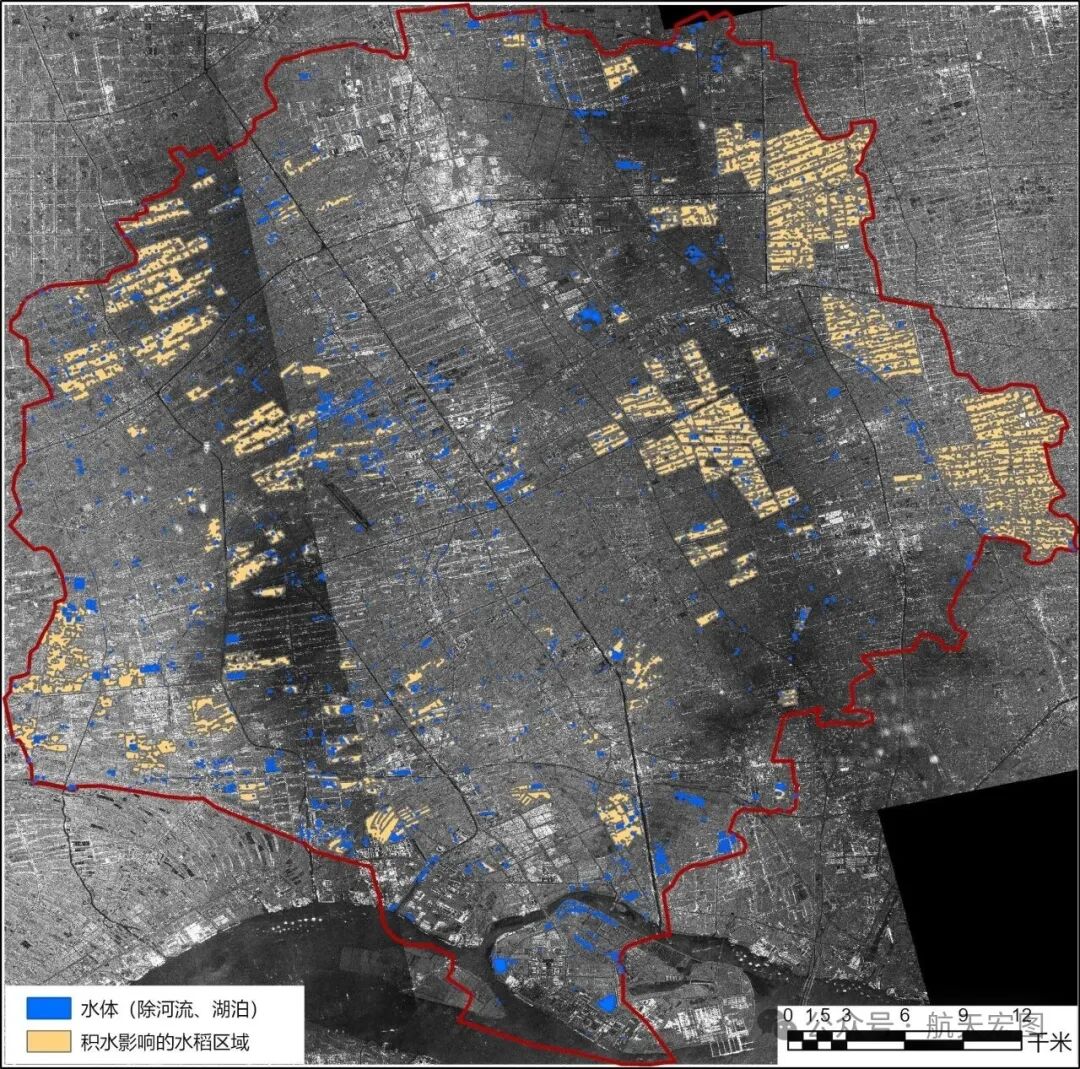 2025年7月,受台风“竹节草”影响,如皋遭遇极端暴雨。女娲星座快速成像,天权模型同步解译,精准识别淹没水稻约0.015平方公里,为农业保险与灾损评估提供可靠数据支撑。