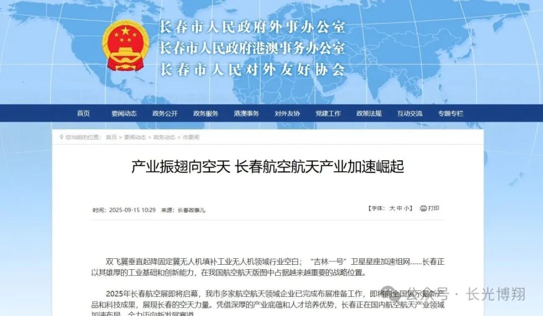 报道长春市正以航空展为强大“磁场”和纽带,不仅成功举办了顶级航空盛宴,更借此机遇加速构建航空航天全链条生态体系,长光博翔为其中重要一环。