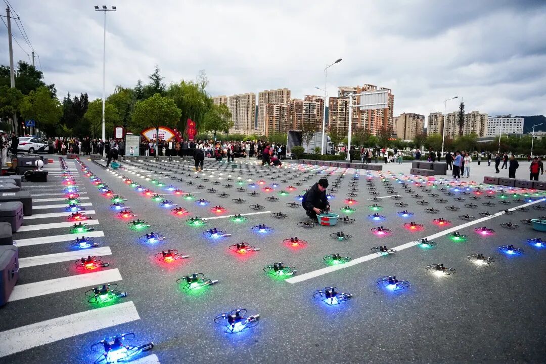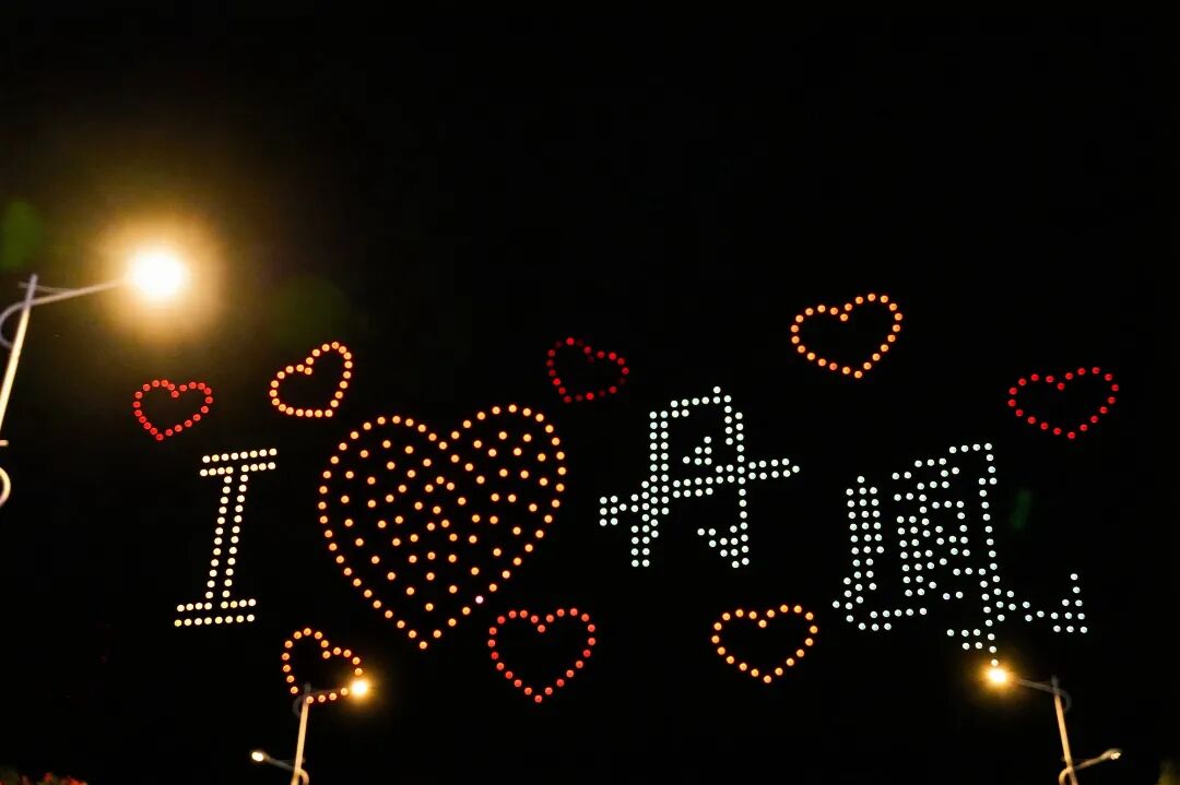 无人机灯光秀作为赛事期间特色活动之一,于9月19日晚,在丹凤县城上空炫酷点亮,活动由天旭航空倾情奉献。一个个绝美图案与现代城市天际线交相辉映。无人机群变幻出全民健身运动三秦、打造低空经济强县、宇宙星辰等画面,为现场观众呈现了一场视觉与文化的盛宴。