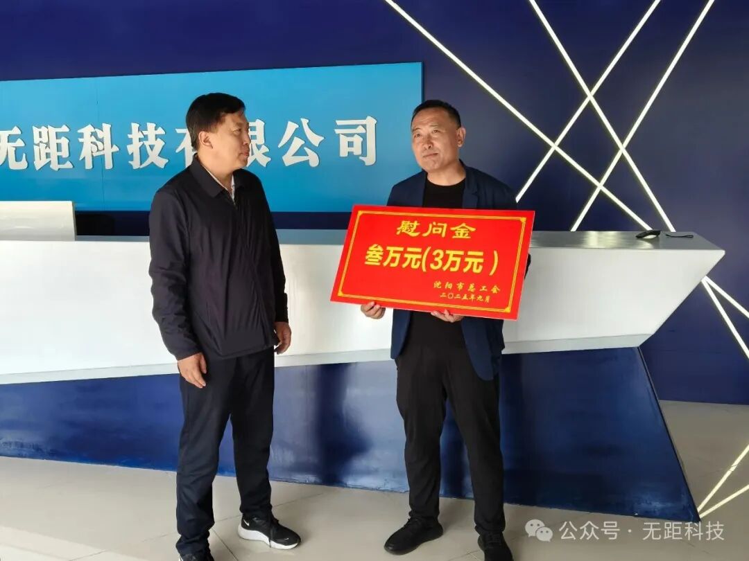 秋高气爽,情暖无距。在中秋、国庆双节来临之际,为传递党和政府对一线职工的深切关怀,9月25日,沈阳市总工会、沈阳高新区、浑南区总工会携全国总工会沈阳高新区蹲点组一行,专程来到沈阳无距科技有限公司,开展“中秋国庆情 工会暖同行”送温暖走访慰问活动,为我司职工送来节日的问候与实实在在的温暖。