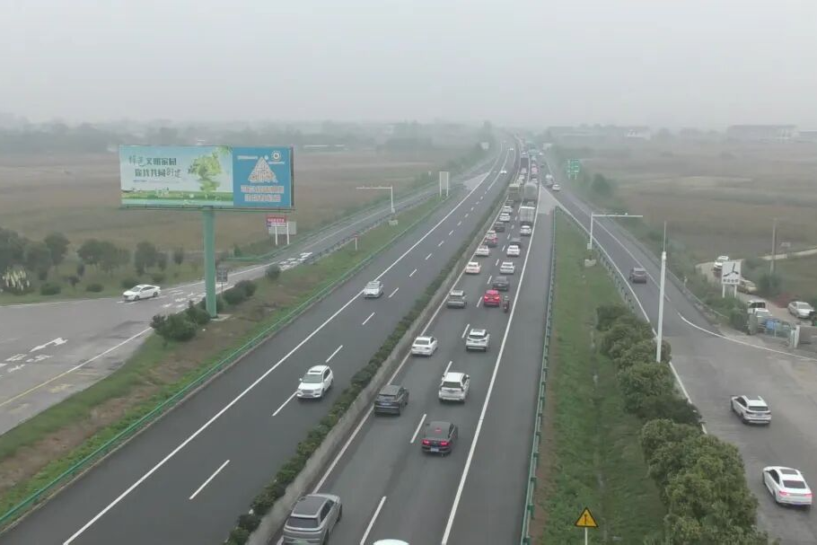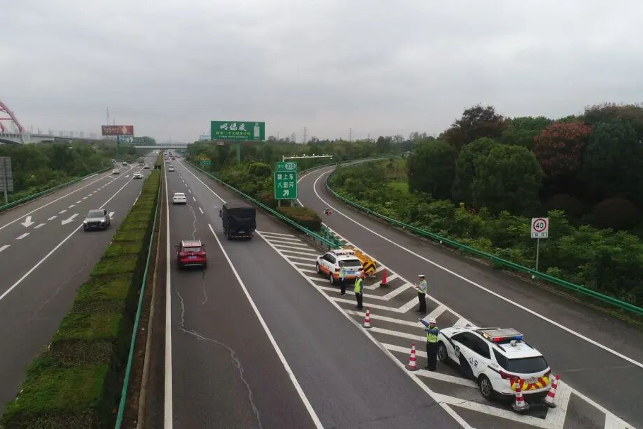 蚌埠交警运用警用无人机在重点路段进行道路交通安全巡查,对占用应急车道、分心驾驶、骑线行驶等违法行为进行抓拍,全力护航群众假日出行。