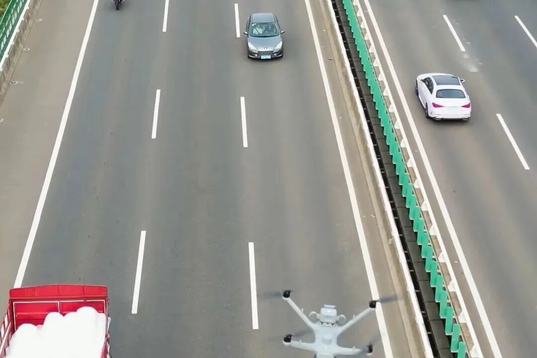 阜阳交警在滁新高速颍上段运用警用无人机开展巡逻工作,实时查看动态路况,提前发现堵点和事故,做到快撤快处,保障道路安全畅通。