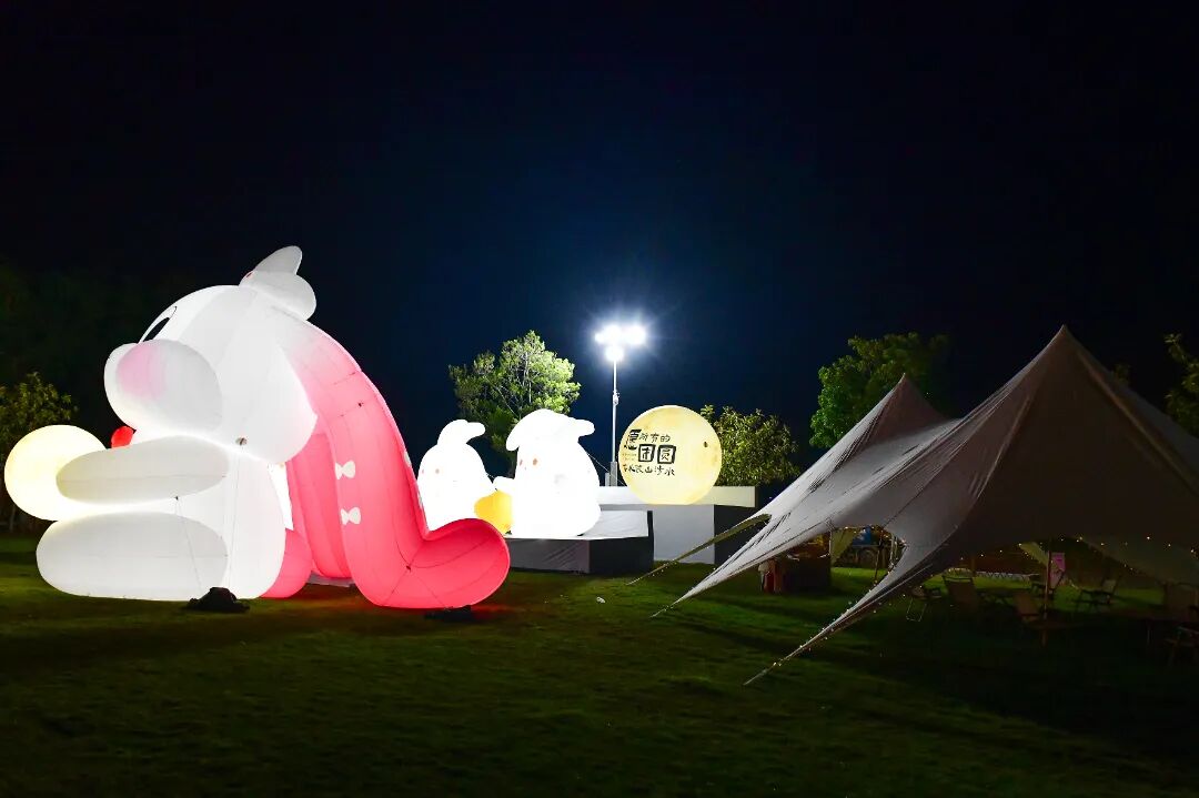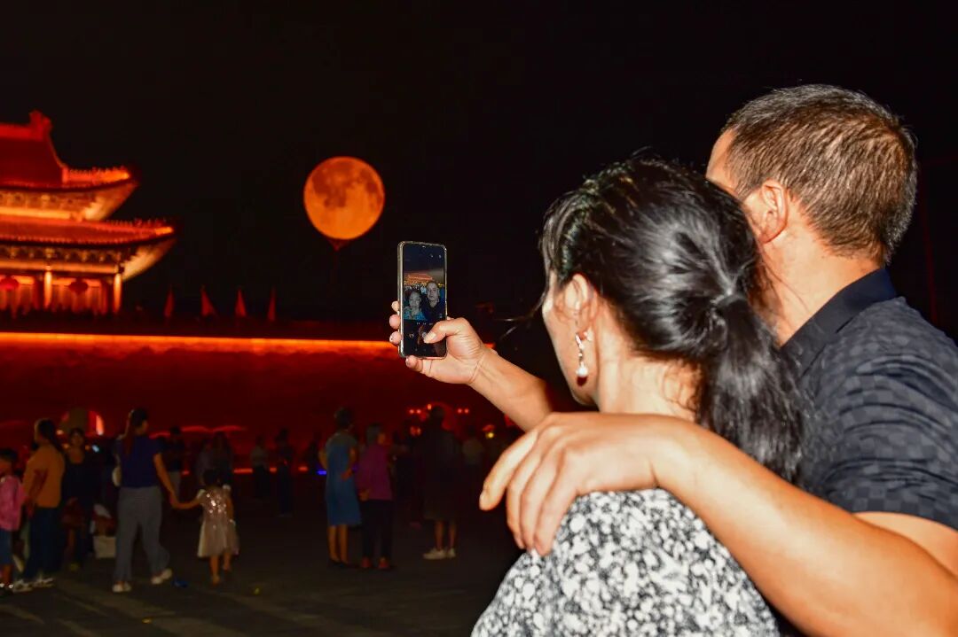像这样的“人造月亮”还有10余处,在同安形成海滨、高山、古城全覆盖的赏月打卡带。登上高山,海拔近千米的莲花镇军营村、白交祠村升起巨型“明月”,构成月照茶山的美景;深入古城,同安影视城、苏颂书院、同安县衙旧址、钟楼等处皆有“明月”照耀。