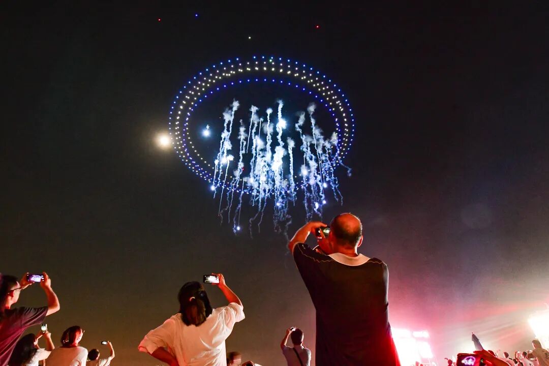 海岸边,围观群众纷纷拿起手机拍摄留念,其中不乏在厦过中秋的台胞。“我在同安十几年,还是第一次在这里过中秋。”作为来自台湾的农业专家,厦门百利控股有限公司技术总监曾明宝表示,“看到这么多无人机精准地表演,是高科技的体现,也是我们中国人的人文情怀。”