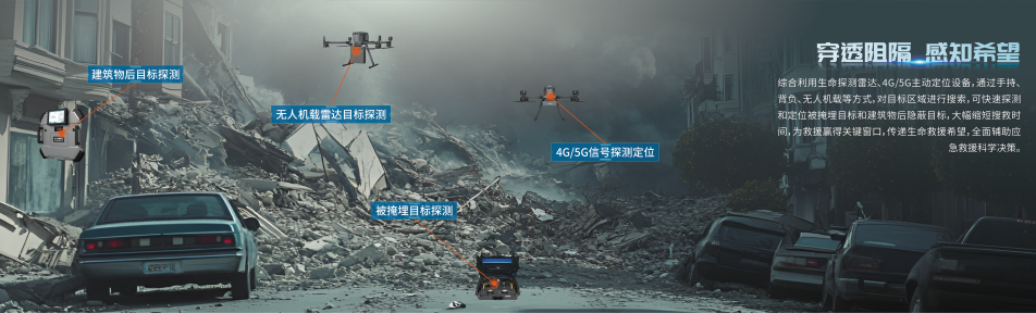 生命探测系列:单兵手持式、便携式、机器人搭载、无人机搭载、无线电无源定位等全系列的生命探测与搜索解决方案。