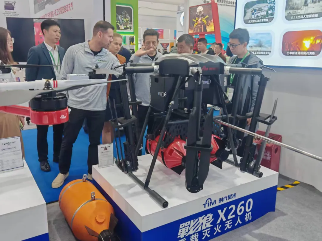 本届中国国际消防展受到国内外消防界高度关注,来自全球40多个国家和地区的生产厂商、检验机构、科研院所、高等院校、消防救援力量共计1200余家单位参展。时代星光也带来了涵盖智慧巡检、林草巡防、高空灭火、救援保障等消防应急领域各类应用场景的全套解决方案产品。其中,战狼A300智慧无人值守机场系统、战狼X260重载灭火无人机等产品均是首次在大型展会中亮相。