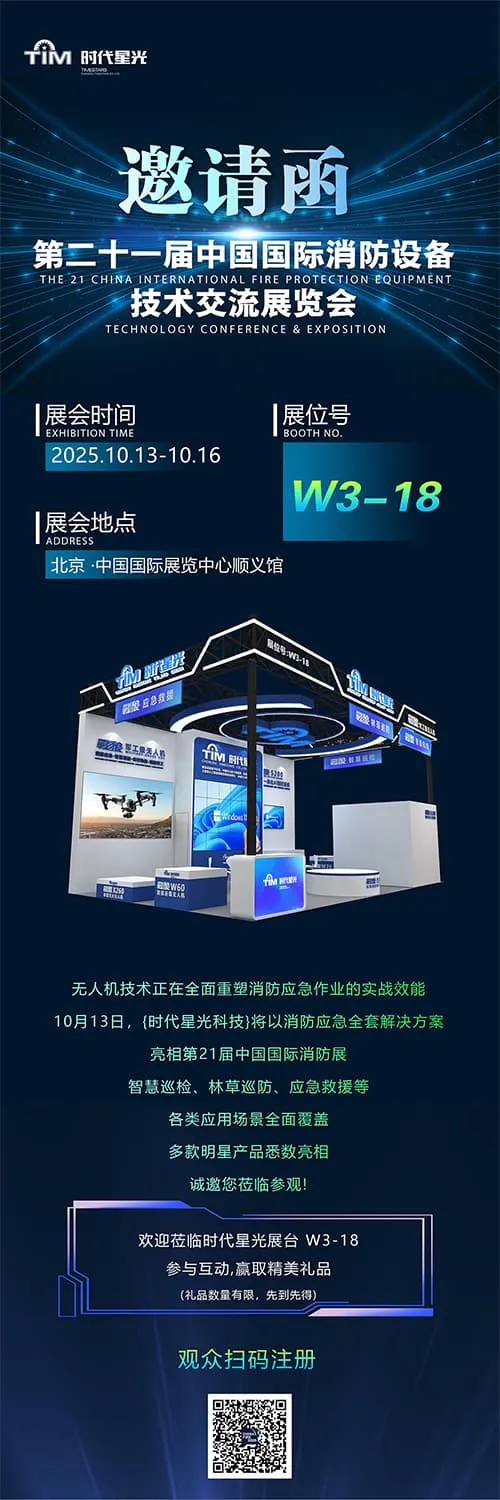 今日,第二十一届中国国际消防设备技术交流展览会(CHINA FIRE 2025)在北京中国国际展览中心(顺义馆)盛大启幕。作为深耕消防应急领域的工业无人机头部企业,时代星光科技携消防应急全套解决方案产品震撼亮相,以“科技赋能智慧消防”的硬核实力,成为展会首日的一大热点。