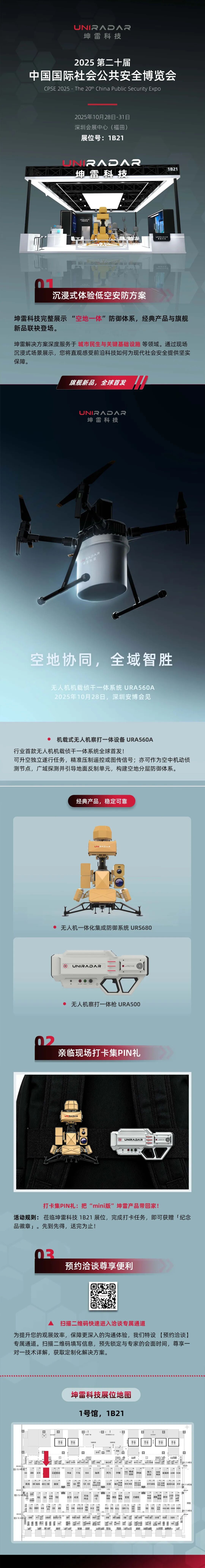 备受全球安防行业瞩目的「2025第二十届中国国际社会公共安全博览会」即将启幕。作为低空安全领域的先行者,坤雷科技已准备就绪,在1B21展位为您系统化呈现沉浸式的低空安防解决方案。