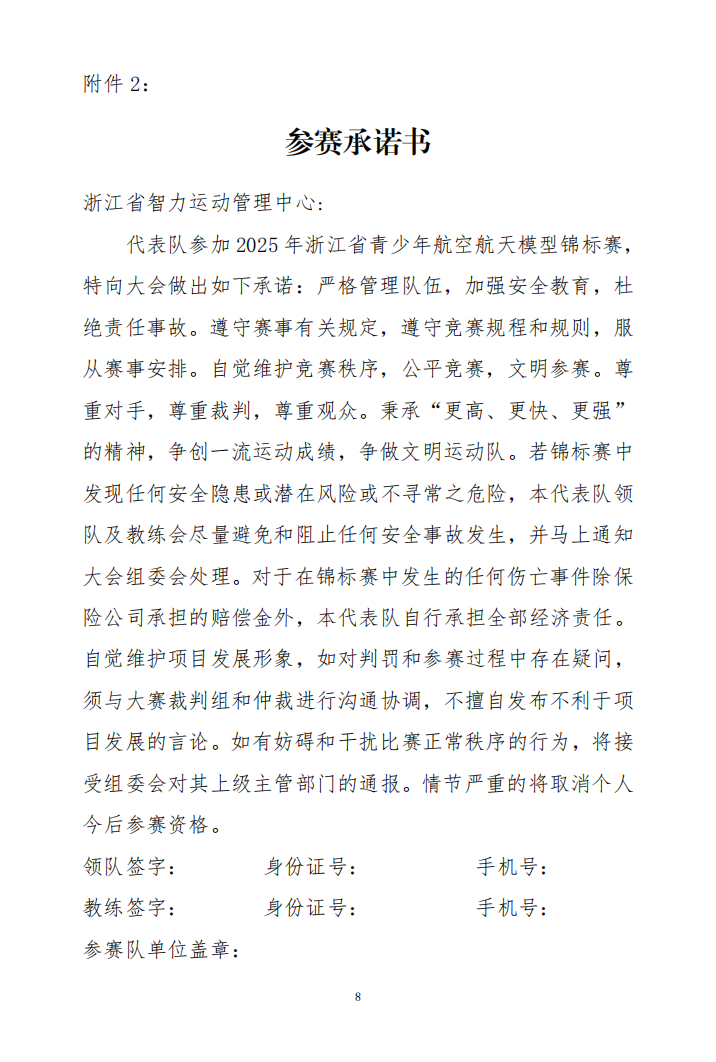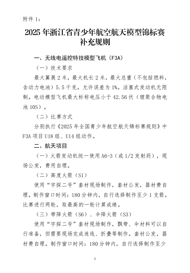 关于2025年浙江省青少年航空航天模型锦标赛的补充通知