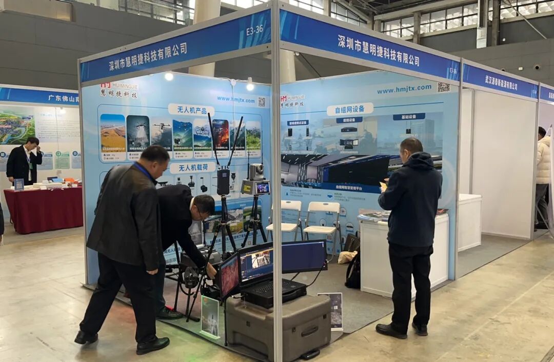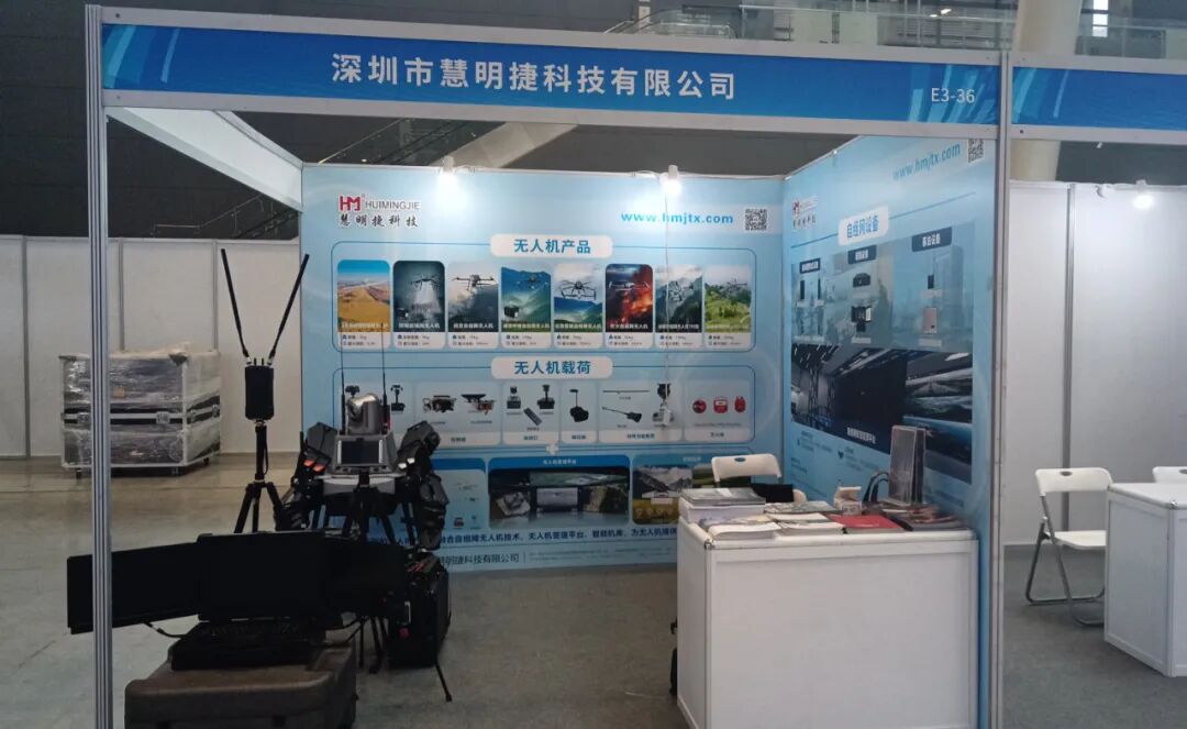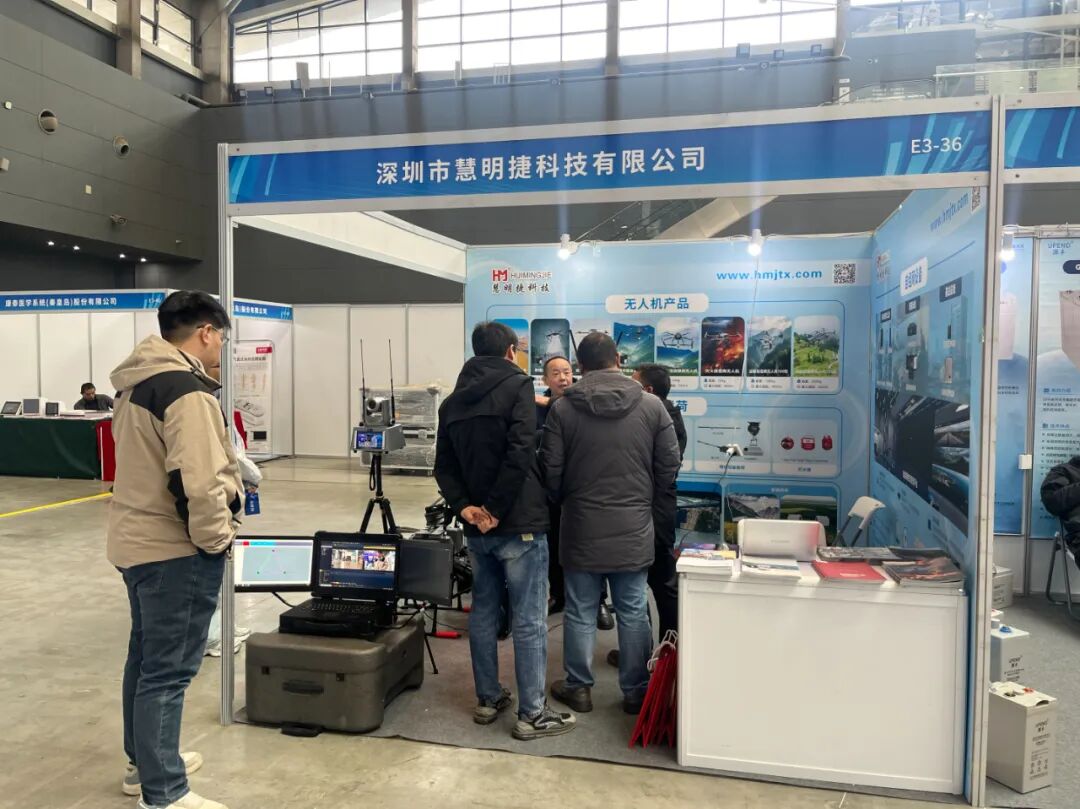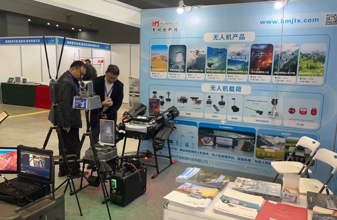 在这场行业盛会上,慧明捷的展位无疑成为展区的焦点之一。本次参展,慧明捷重点展示了50KG灭火自组网无人机、侦查自组网无人机以及自组网通信设备,全方位展现了自组网技术在应急救援场景中的硬核实力。