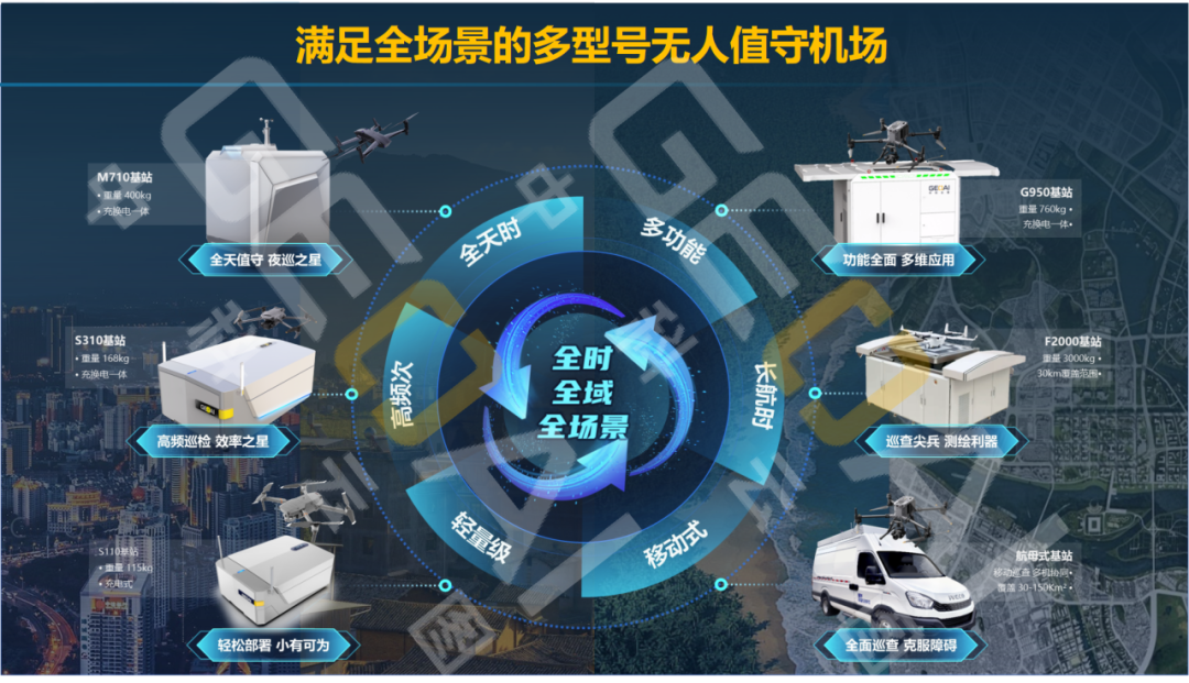 一张网即针对不同业务场景,部署功能各异的无人机基站,通过统一接入网络,实现核心区7×24小时高频次自主巡检和5分钟内快速响应。
