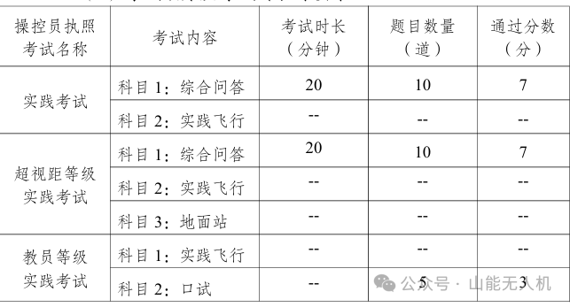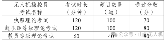 主要分为两大模块“理论考试”+“实操考试(包含地面站)”不同等级的考核标准不同。具体由下文详细介绍: