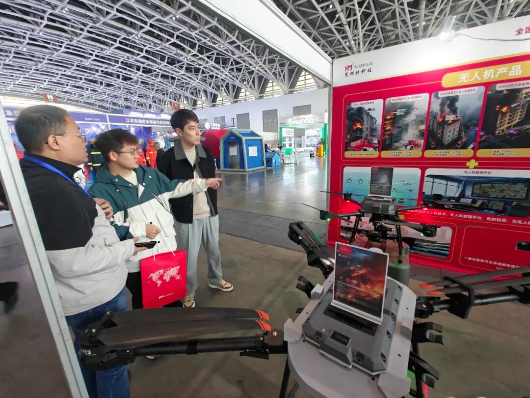 在展会现场,慧明捷侦查自组网无人机凭借其灵活的侦查能力与稳定的自组网通信优势,成为现场的焦点之一。该无人机可快速深入复杂场景开展侦查作业,实时传输现场数据,为救援决策提供精准支撑。与此同时,50KG灭火自组网无人机同样备受瞩目,其强大的负载能力与高效的灭火性能,能够有效应对多种火灾场景,为消防救援提供有力保障。