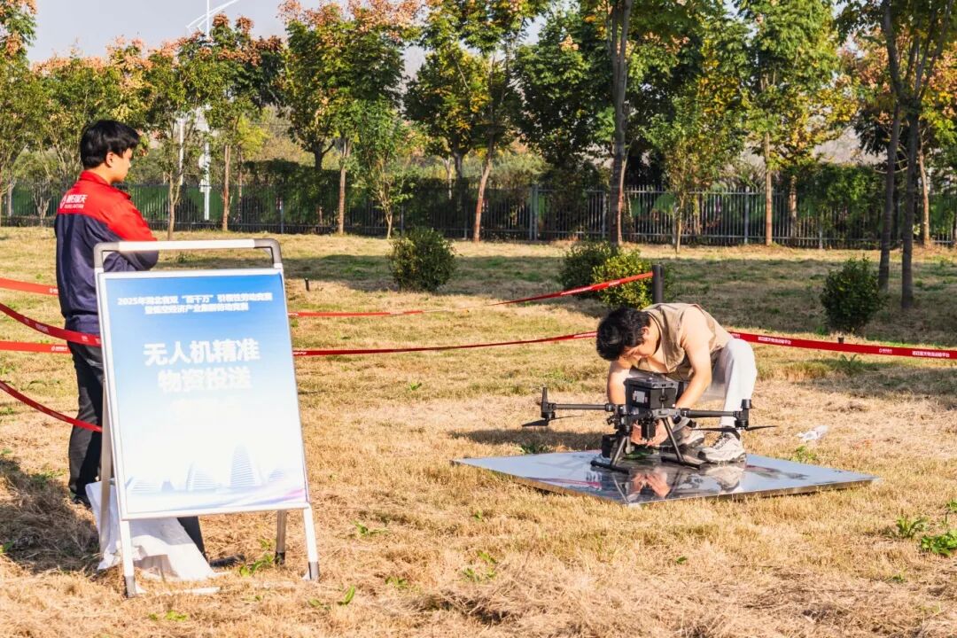 无人机精准投送物资竞赛现场,飞手们全神贯注,操控无人机将沙包准确投入指定红圈,每一次精准投递都离不开对无人机性能的熟练掌握和对环境的精准判断。