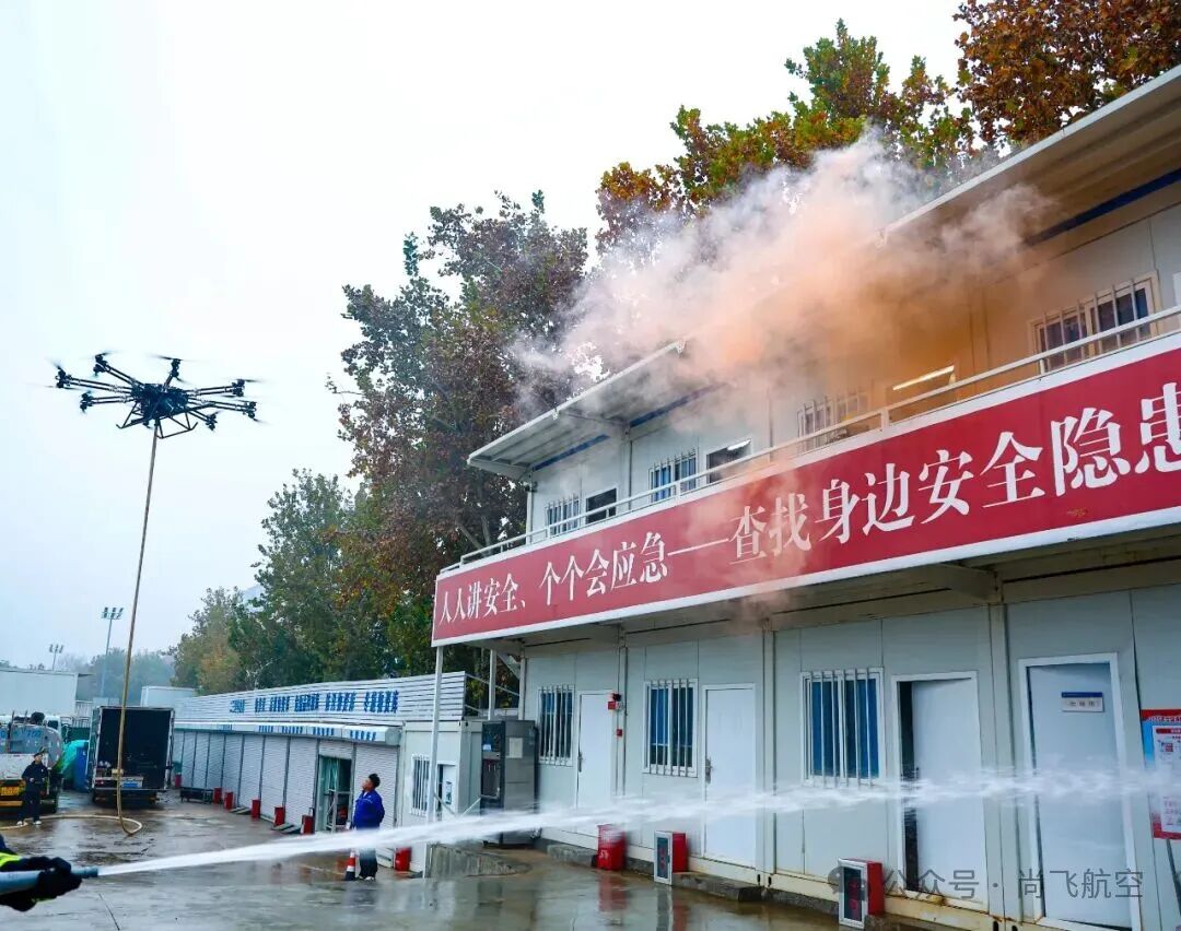 在此关键时刻,KQ10FF消防无人机迅速升空,飞赴模拟火点上空。KQ10FF消防无人机将地面消防栓的持续供水能力与无人机的空中机动优势完美结合,在空中形成了一道精准、高效的灭火战线。