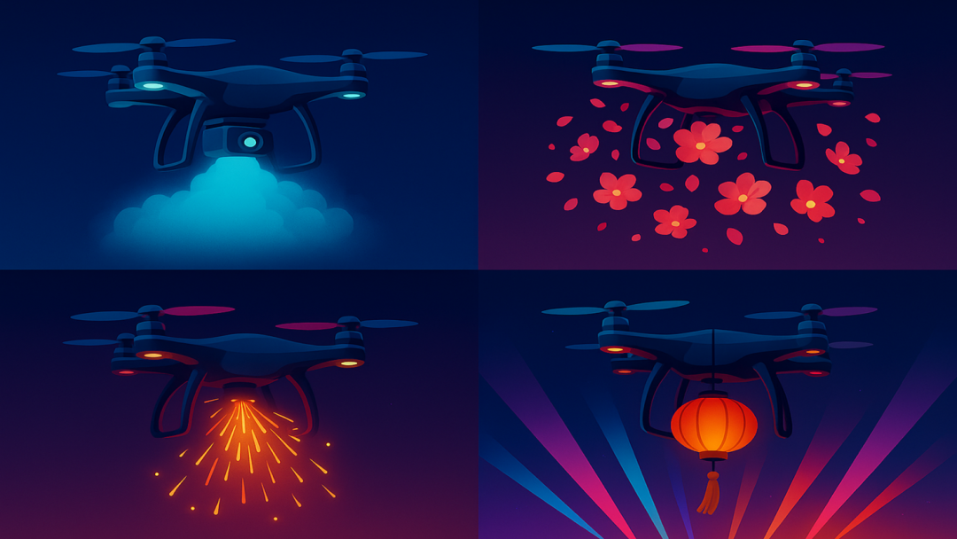当“灯光拼图”逐渐失去新意,行业正走向一条更开阔的路径——以多载荷为媒介,以定制化为方法,让无人机从发光的点阵,升级为能够承载故事、情绪与文化符号的内容载体。