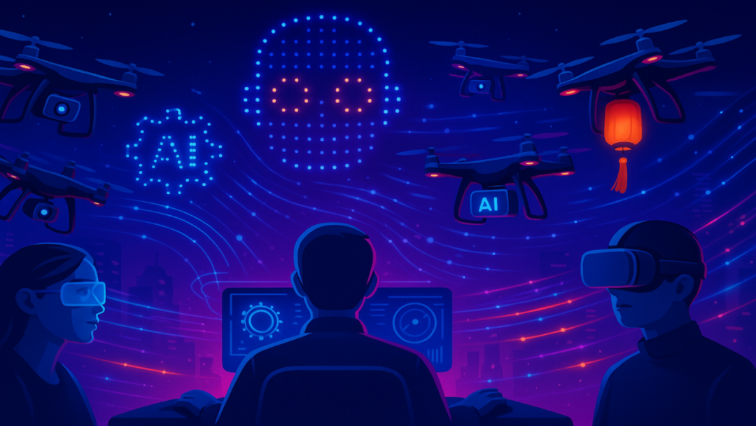 人工智能将为演出注入“现场大脑”。通过摄像头和声浪感知分析观众情绪,系统可实时调整队形节奏、灯光轨迹与剧情结构——高潮时引爆烟花,注意力分散时集中阵列,演出将从预设脚本变为即时生成的互动体验。