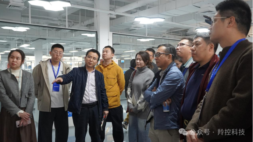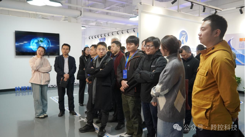 首先海南嘉宾在公司展厅深入了解了羚控科技的发展历程。刘书记从公司创立背景讲起,系统介绍了五大核心技术体系、产业布局以及专利荣誉,全方位展现了企业的技术实力与发展脉络。