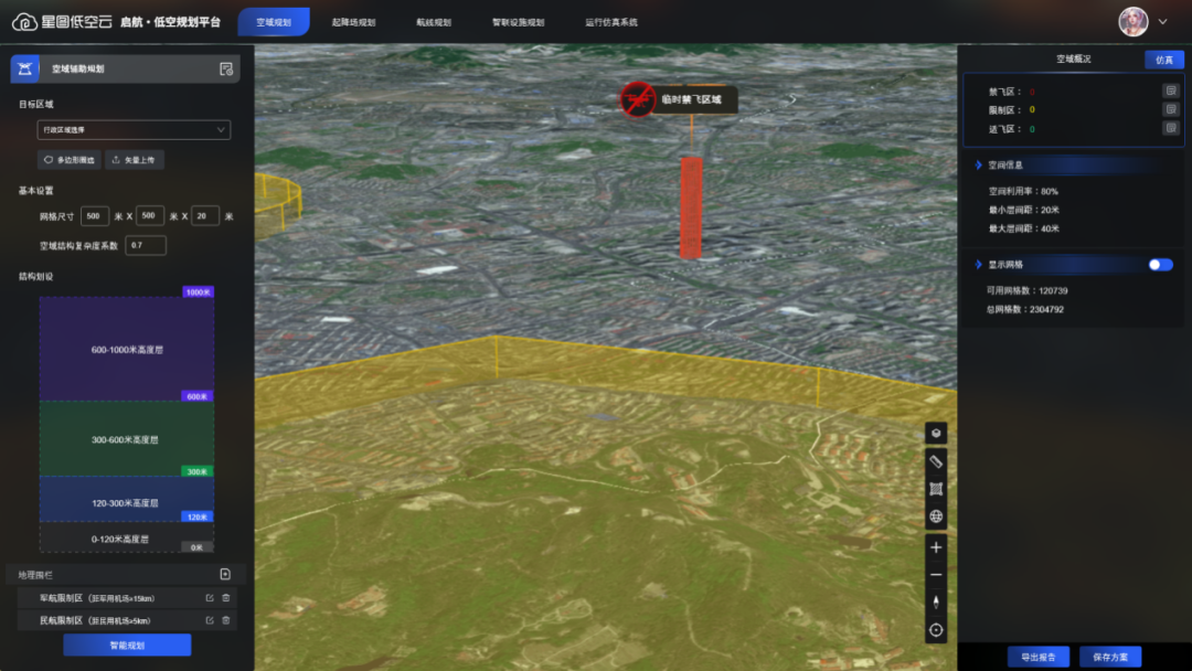 “想做低空,却不知从何管起”,这是多数城市面临的首要难题。中科星图将“低空规划” 作为五位一体体系的起点,并在会上正式推出启航・低空规划平台V1.1版本,以“顶层设计+仿真验证”为核心,解决“低空建设的第一步该怎么走”的问题。从低空安全角度来看,这也是飞行安全的第一步,通过整合低空环境全量要素支撑空域规划运行。