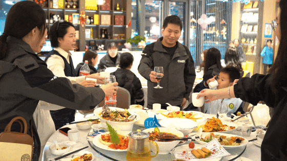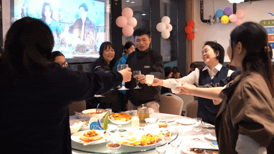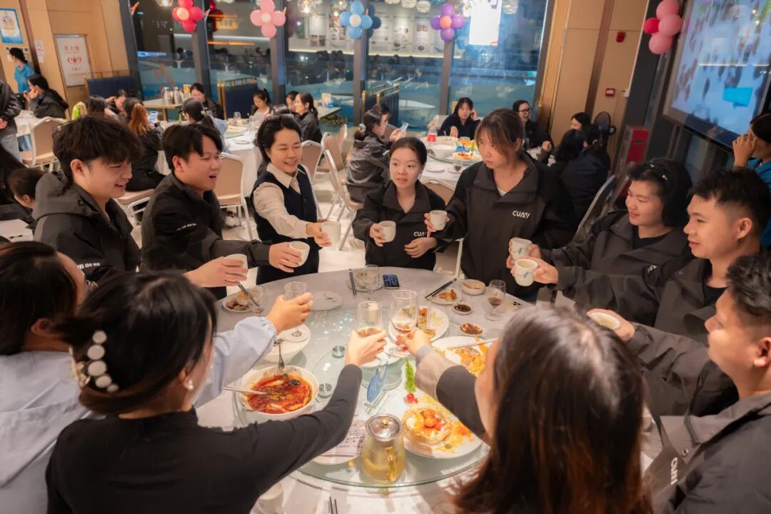 华灯初上,盛典的喜悦在温馨的公司聚餐中延续。大家举杯同庆,共同展望未来。