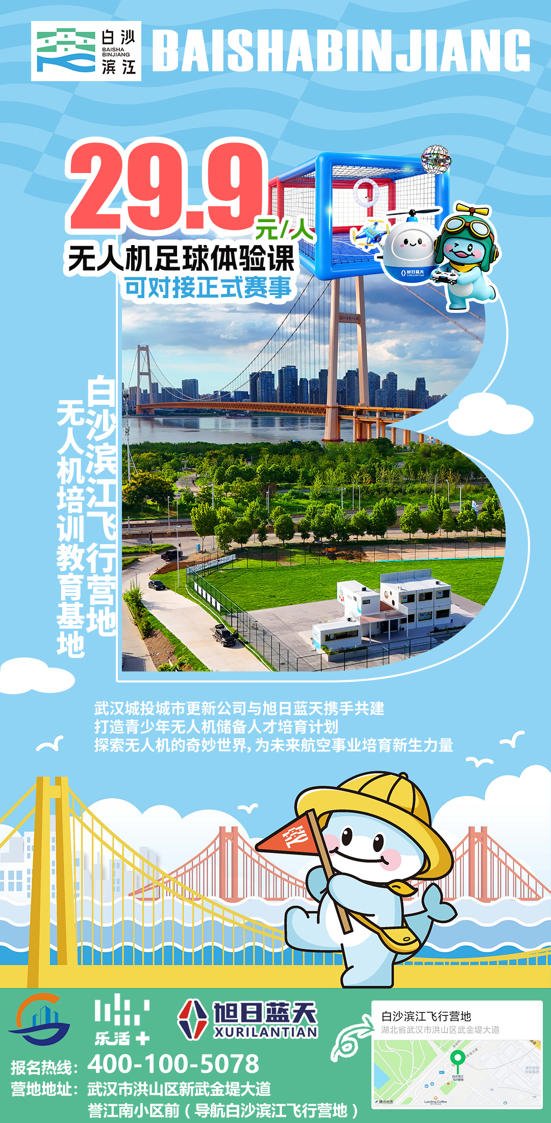 近日,旭日蓝天联合武汉白沙滨江飞行营地,全新上线无人机足球体验课与穿越机培训课程,为各年龄段无人机爱好者打造集科技、运动与娱乐于一体的低空运动新体验,让每一位探索者都能感受飞行的独特魅力!
