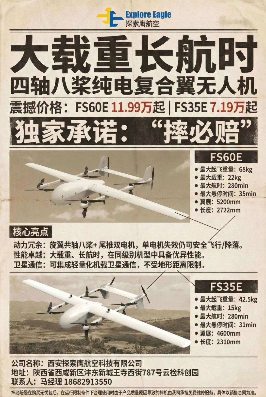 具体详见产品文章:FS60E卫星通信垂直起降固定翼无人机