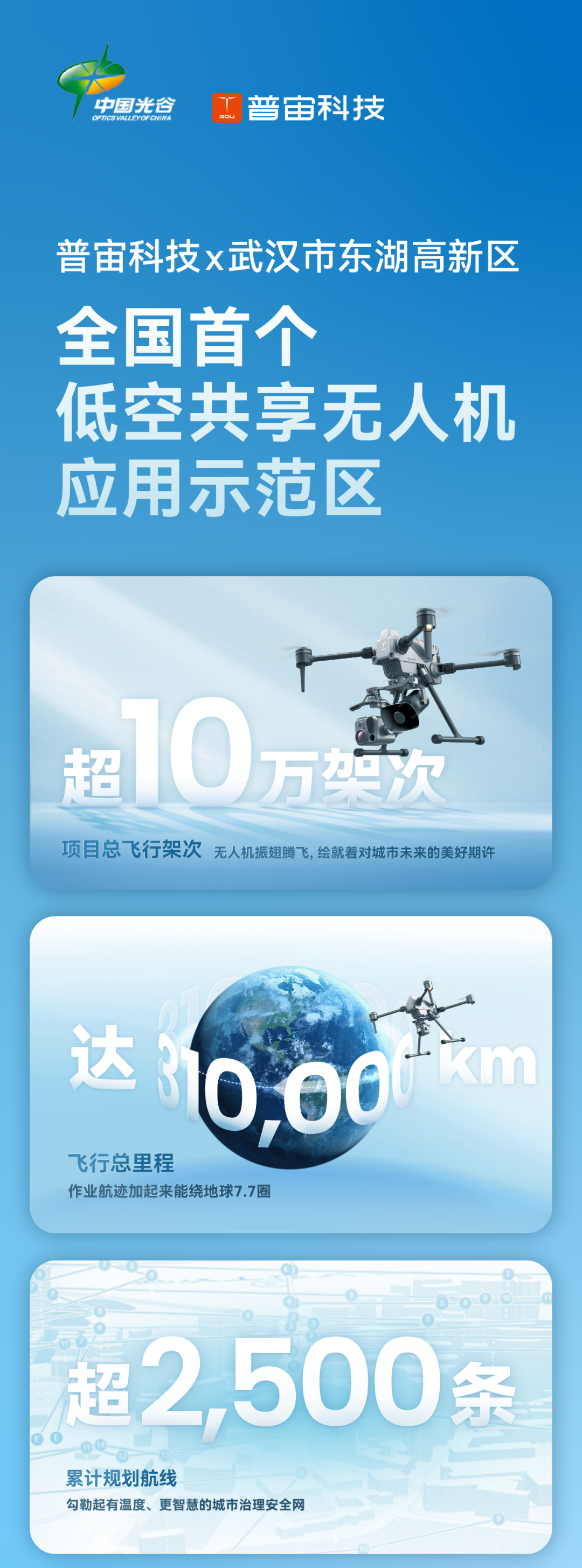 未来,普宙科技将基于无人机、5G基础设施、大数据、云平台等技术,不断完善产品和服务,与全球合作伙伴携手开创低空共享经济时代。