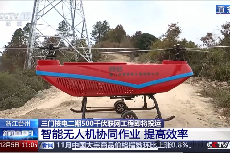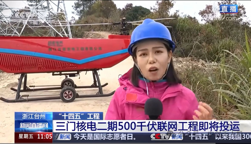 12 月 5 日,CCTV-13《新闻直播间》聚焦国家重大能源工程 —— 浙江三门核电二期 500 千伏联网工程,全景呈现了这条贯穿浙东山海的 “绿色能源大动脉” 验收投运的关键环节。当镜头对准崇山峻岭间的输电铁塔,无人机编队与高空作业人员协同 “体检” 的画面震撼全网,而这背后,正是中创航空以硬核科技赋能能源转型的生动实践!