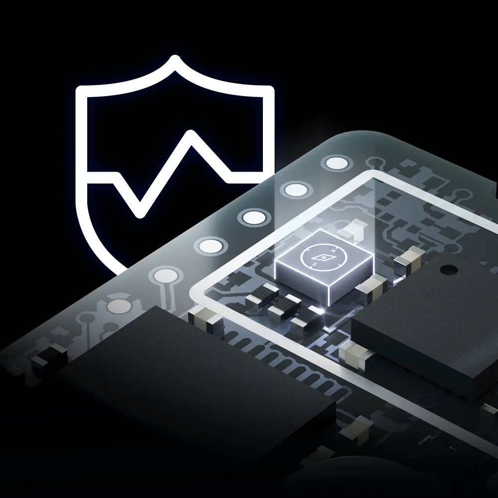 内置 ST IIS2MDC 电子罗盘,具备高达 ±50 Gs 的磁场动态范围检测与温度偏移补偿功能,在同类产品中表现出高动态范围与强抗磁场干扰性能。