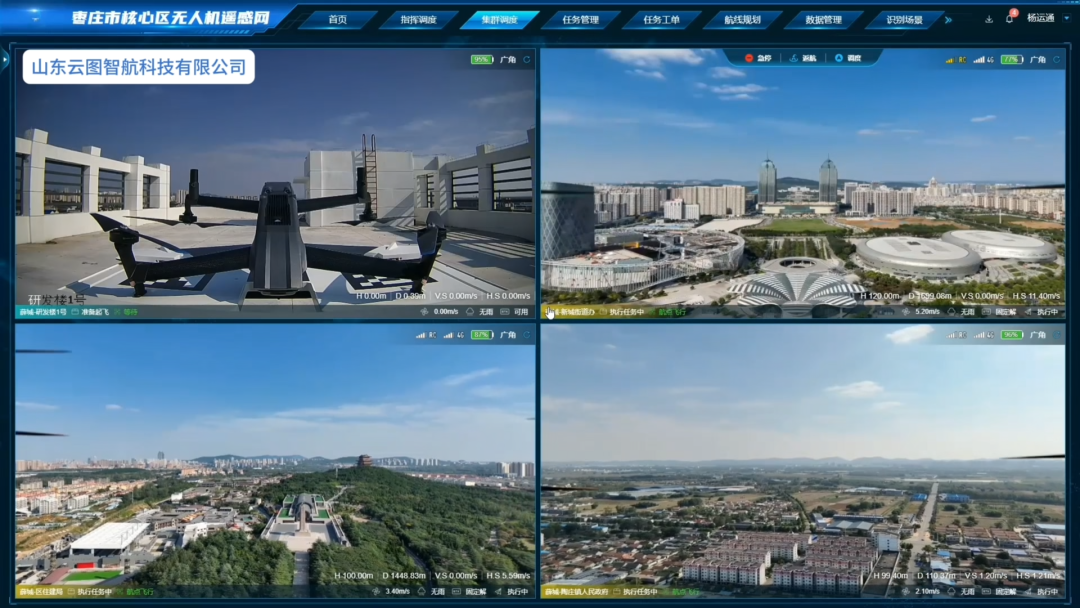 在薛城区低空无人机遥感网指挥中心,无人机发现异常后,系统即向一线执法队员推送坐标,实现对违规渣土车、违章建筑、占道经营等问题的“空中发现、地面处置”闭环管理,推动城市治理向“智慧”转型。