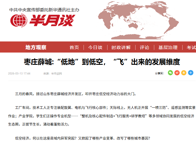 山东云图智航的快速发展推动薛城区低空产业高效落地,引发了国内多家权威媒体的高度关注,薛城区低空经济从“造起来”到“用起来”的跨越式发展路径成为焦点。