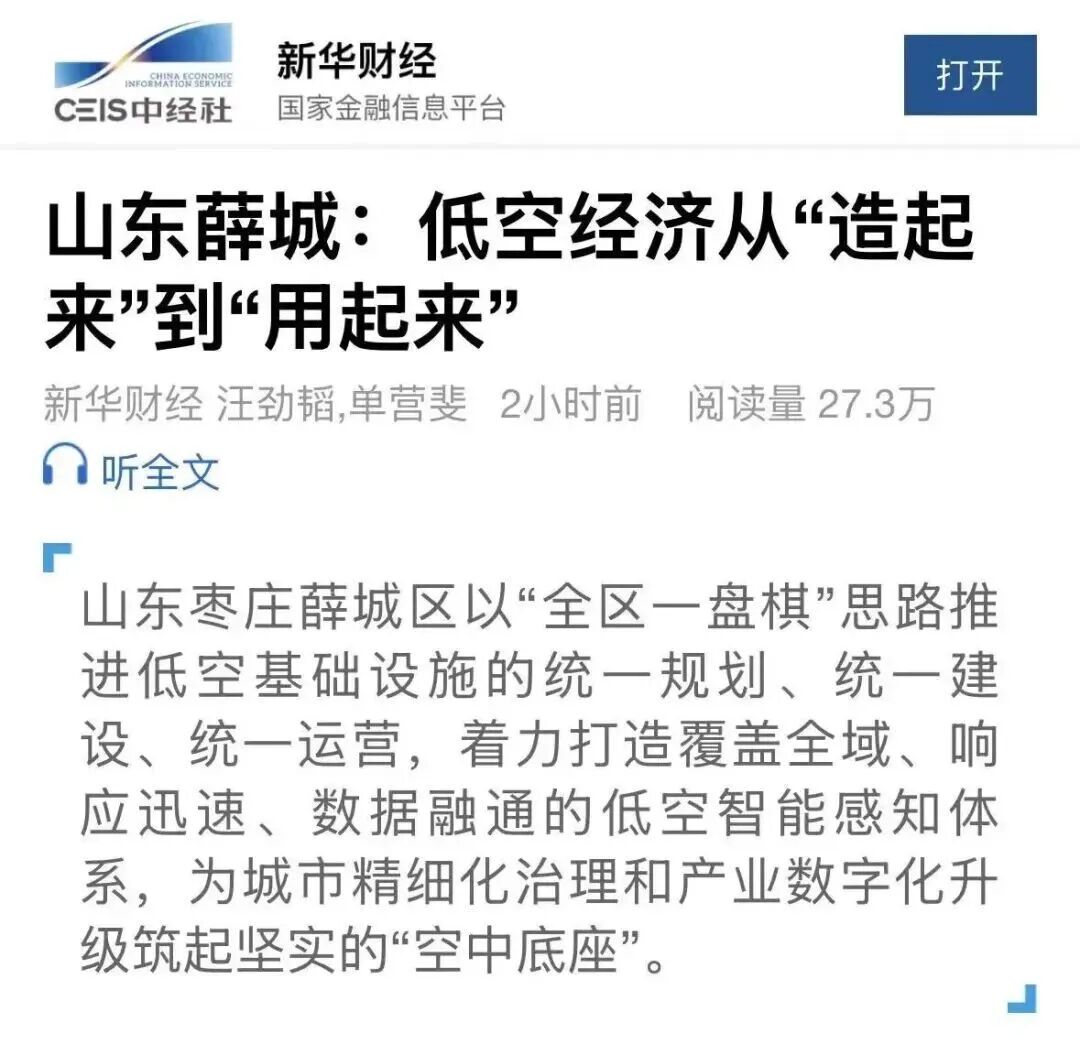 薛城的实践表明:当技术与需求精准对接、数据与治理深度融合,低空经济才能真正从“新风口”转化为“新引擎”。