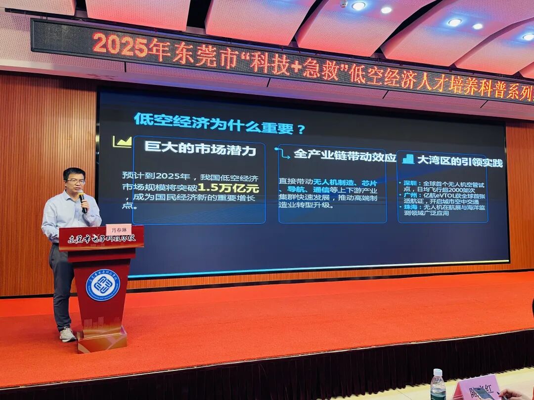 活动以专题讲座为开篇,两大领域权威专家联袂开讲,系统解码低空经济与无人机应急救援的核心内涵,为在场师生带来兼具专业深度与科普温度的知识分享。东莞中学横沥学校高级教师肖春琳聚焦无人机应急救援主题展开深度分享,围绕无人机在应急场景中的独特优势、关键技术支撑、实战应用场景进行系统阐释,并结合真实救援案例,直观展现无人机在自然灾害处置、城市应急保障、生命搜救等场景中的关键作用,生动诠释科技赋能应急救援的高效性与便捷性。讲座现场,师生们全神贯注、积极互动,浓厚的求知氛围充盈全场,充分彰显青少年对前沿科技与应急知识的热切追求。