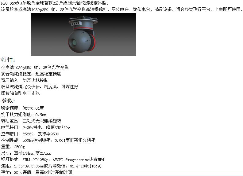 云汉联合 NEO-6S六轴陀螺稳定光电吊舱