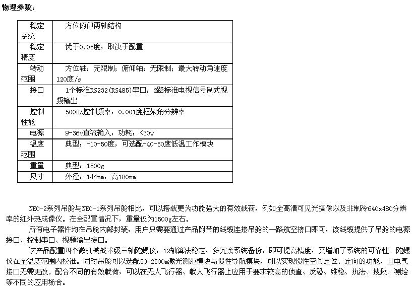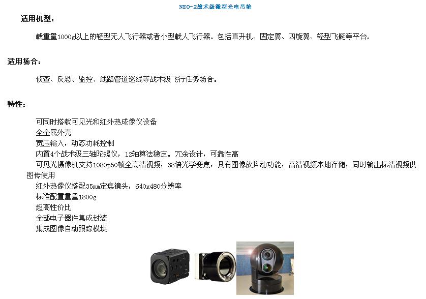 云汉联合 NEO-6S六轴陀螺稳定光电吊舱