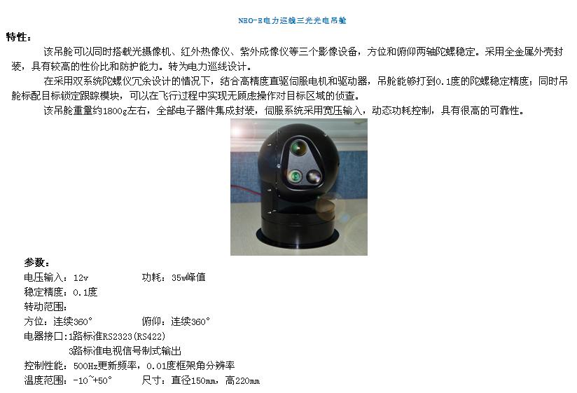 云汉联合 NEO-E电力巡线三光光电吊舱