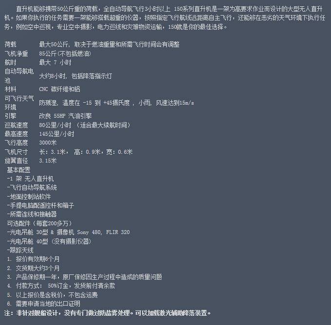 佰吉特 HE-150型无人直升机