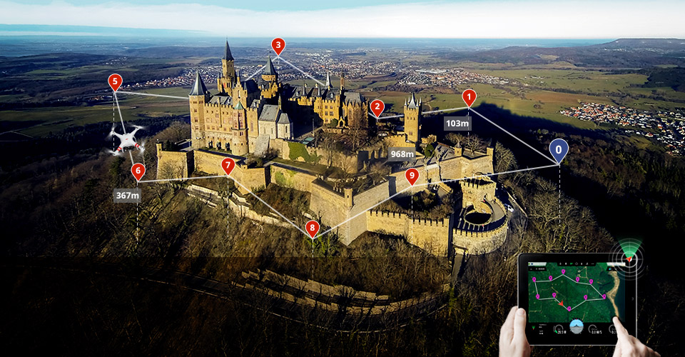 Phantom 2 全面支持16点地面站功能,它不再是一部没有灵魂的机器,而是您拥有的一台智能飞行体,它能帮您完成更多更复杂的任务。(需加装 DJI 2.4G 蓝牙电台。)