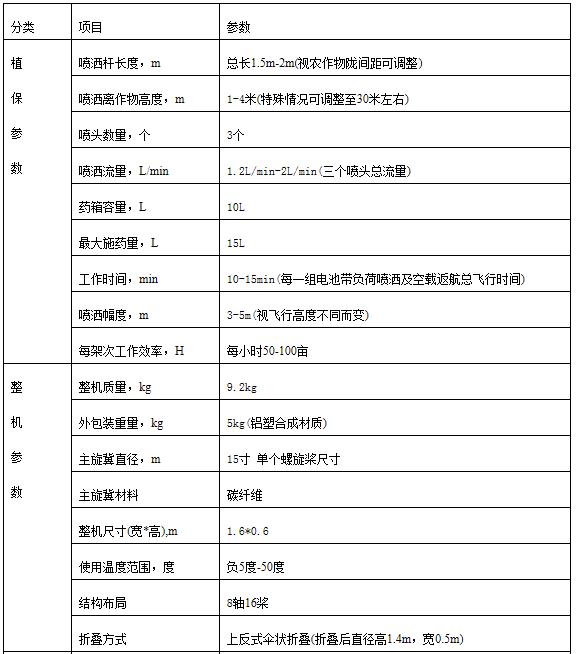 郑航多旋冀农用电子植保无人机区别于市场上常见的农用直升机,简便式多旋冀机,该机采用模块化设计,使用与维护极其方便,稳定性无可比拟,防水、防摔、防故障效果为全球一流水平。该机采用锂电池作为飞行动力,平均每组电池可连续工作15分钟、两个架次、喷幅宽度和飞行高度可自由调整。使用郑航多旋冀农用电子植保无人机进行作业,每架飞机每天可完成作业面积500亩以上,是人工效率的100倍以上。