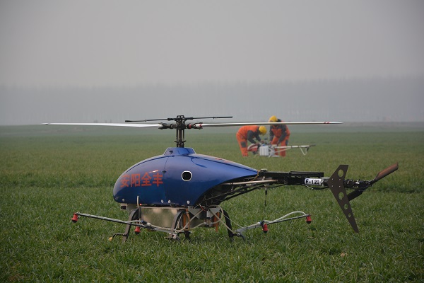 系统组成:发动机、主旋翼、尾旋翼、机身、起落架、喷洒系统、智能飞控系统。