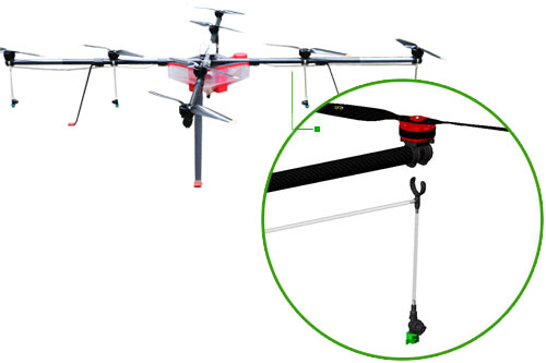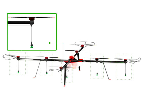 专业的喷洒结构,喷头置于螺旋桨正下方,高效利用了螺旋桨下洗气流,增加药剂穿透性,并防止农药漂移,提高施药效果。