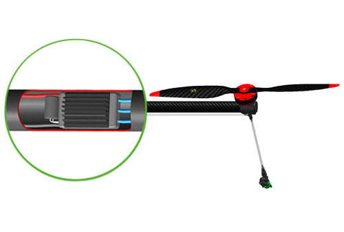 采用高效率马达与螺旋桨及首创高品质环形电调组成的动力系统,使用时通过机臂管道冷却,防水防尘,低干扰,低噪音,运行顺畅,使用寿命长。