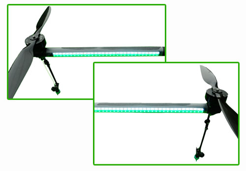 机翼两端安装有高亮LED指示灯带,具有远距离识别和低电量闪烁报警功能。